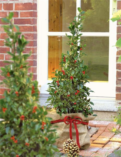 Immergrünes Laubgehölz mit leuchtend roten Beeren, besonders schön in Pyramidenform.