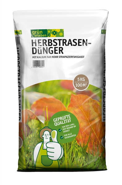 grün erleben HERBSTRASENDüNGER ist ein organisch-mineralischer Spezialdünger für die Stabilisierung und Pflege von Zier-, Spiel- und Sportrasenflächen. Er sorgt mit seiner kaliumbetonten Zusammensetzung für ausdauernde Kraft und Widerstandsfähigkeit der Gräser. grün erleben HERBSTRASENDüNGER ist durch seine spezielle Formel optimal für den Langzeitbedarf aller Rasengräser im Spätsommer und Herbst geeignet. Die spezielle Nährstoffkombination sorgt für eine gesteuerte und anhaltende Nährstoffzufuhr bis zum Ausklingen der Vegetationsphase.