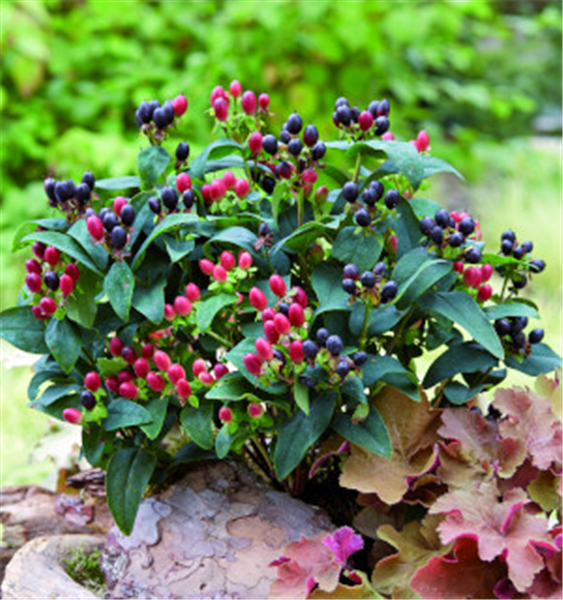 Das pflegeleichte Johanniskraut (Hypericum inodorum) darf im Herbst vor keiner Haustüre fehlen. Es überzeugt mit wunderschönen dunkelgrünen Blättern und vielen roten Früchten. Auch im Sommer hat das Laubgehölz einiges zu bieten. Von Mai bis Juli schmücken goldgelbe Blüten das grüne Laub. Pflanzen Sie das Johanniskraut im Garten an einen sonnigen bis halbschattigen Standort und gießen es regelmäßig. Überschüssiges Wasser sollte gut ablaufen können.