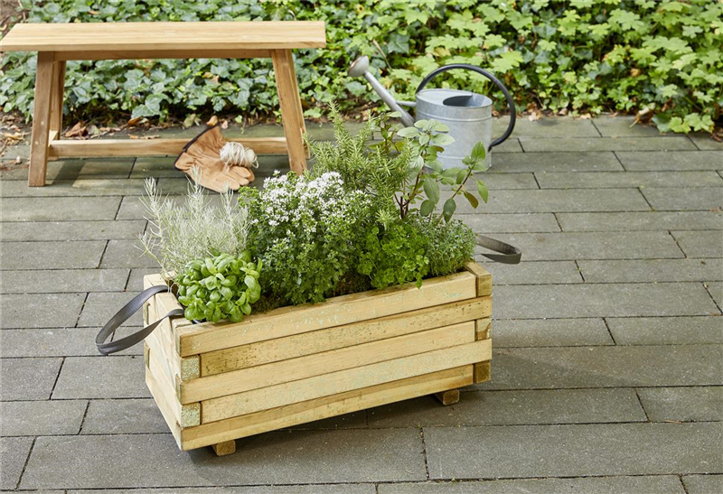 Tipp: Wer keine Zeit oder Lust zum Bauen hat, der ist bestens mit dem Pflanzkasten ausgestattet. Portabel und an zwei Seiten griffbereit kann dieser Kasten an jedes sonnige Plätzchen ohne Kraftanstrengung gestellt werden. Hier fühlen sich Ihre Kräuter besonders wohl.