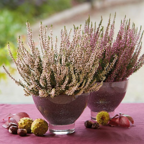 In Weiß, Lila- und Pinktönen erstrahlen im Beet die Klassiker wie die reichblühende Knospenblüher- und Besenheide (Calluna vulgaris). Die farbenfrohe Chrysantheme (Chrysanthemum indicum) zeigt ihre körbchenartigen Blüten in den Farben Weiß, Gelb, Orange, Rot oder Pink sogar bis in den November hinein. Entfernen Sie vertrocknete Blüten, um Platz für neue zu schaffen. Man sollte sie reichlich gießen, außerdem ist ein windgeschützter Platz ratsam.