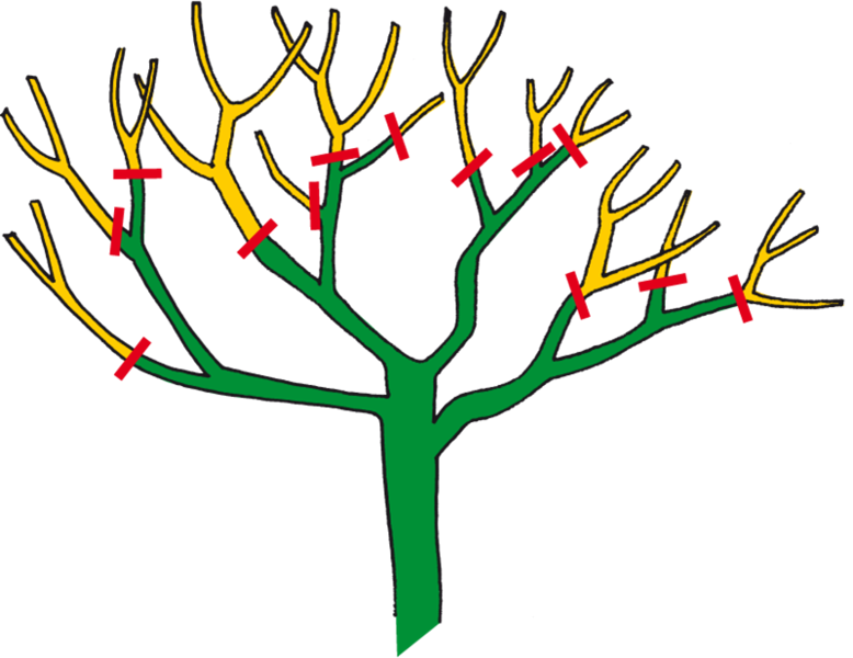 Sie werden in der Regel nur ausgelichtet, dabei Totholz, beschädigtes Holz und die alten dicken Triebe zugunsten der Jüngeren entfernen.