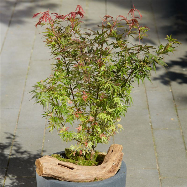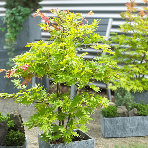 Sein Platz sollte sonnig bis halbschattig und am besten windgeschützt sein. Der Fächerahorn weist eine gute Frosthärte auf. Der Laubneuaustrieb im Frühjahr könnte allerdings empfindlich auf späte Fröste reagieren. Deshalb ist ein geschützter Standort empfehlenswert. Im humosen, durchlässigen Boden fühlt er sich am wohlsten. Der Fächerahorn ist ein Flachwurzler und mag daher gerne und gut gegossen werden – bitte nicht über das Laub, sondern direkt am Stamm – sonst trocknen seine filigranen Blätter schnell aus. Steht der Fächerahorn im Kübel auf Terrasse oder Balkon, muss er öfter gegossen werden. Achten Sie auf einen guten Wasserabzug. Hier freut er sich zudem über eine extra Nährstoffzugabe in Form von Kübelpflanzendünger. Ein Schnitt ist nicht nötig, da er ganz von selbst eine schöne natürliche Krone bildet.