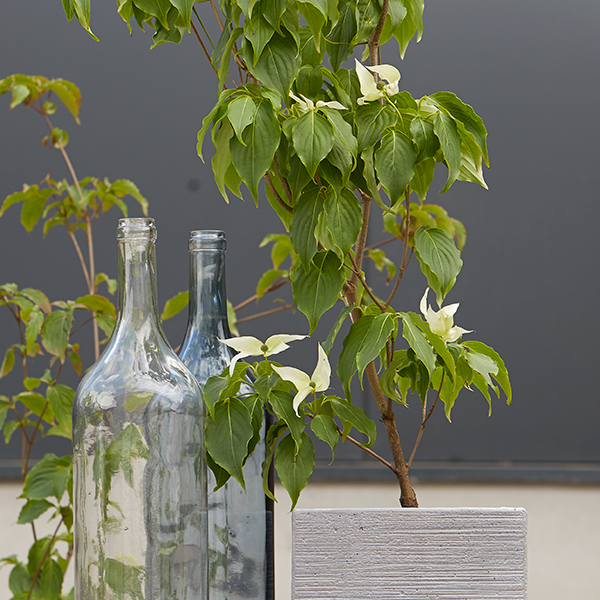 Am besten kommt der Chinesische Blumenhartriegel in Einzelstellung zur Geltung. Die hat er auch verdient, denn er ist im Frühjahr mit unzähligen Blüten übersät. Die weißen Blüten haben eine gute Weitenwirkung und strahlen vor einem dunklen Hintergrund besonders stark.