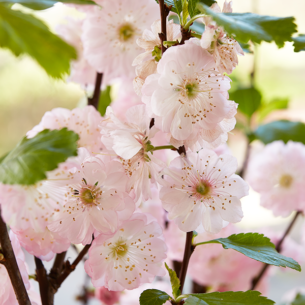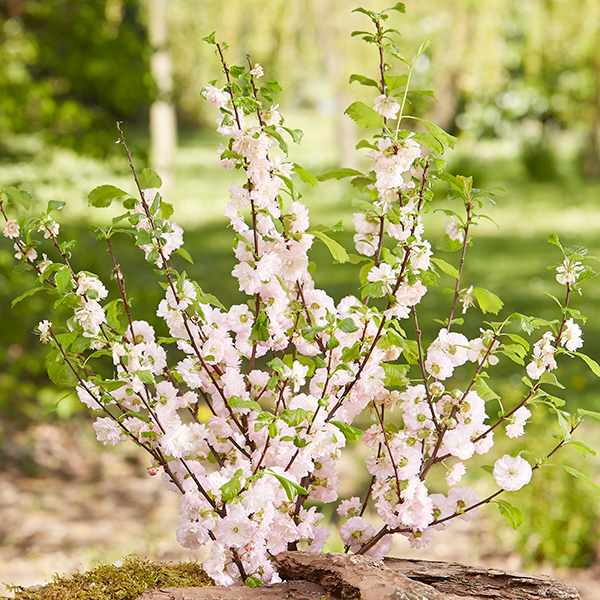 Das Mandelbäumchen (Prunus triloba) ist ein sommergrüner Strauch, der zur Familie der Rosengewächse gehört und dessen rosa Blüten gefüllt und röschenartig sind. Sie erscheinen im April und Mai, meist vor dem Blattaustrieb. Die Wuchsform ist aufrecht, buschig, dicht verzweigt mit einer Höhe von über 2 m. Es eignet sich als Stämmchen gut für kleine Gärten und Vorgärten, fühlt sich aber auch in Blumenbeeten und Staudenrabatten wohl. In der natürlichen Strauchform eignet es sich gut für Blütenhecken zusammen mit anderen Sträuchern oder als Solitär. Ob im Kübel oder in der Erde, es findet überall seinen Platz, am liebsten sonnig bis halbschattig und geschützt.
