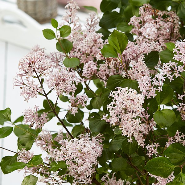 Der Zwergduftflieder (Syringa meyeri ’Palibin‘) ist ein langsam wachsender, niedriger und dicht verzweigter Strauch. Er erreicht eine Höhe sowie Breite bis 120 cm. Bereits ab Ende Mai bringt er eine große Zahl kräftig duftender zartrosa-lila Blütenrispen hervor. Er ist pflegeleicht und kommt mit Frost gut zurecht. Vermeiden Sie extrem stickstoffhaltige Düngemittel. Diese verringern deutlich die Blütenbildung. Der Zwergduftflieder steht gern sonnig und geschützt.