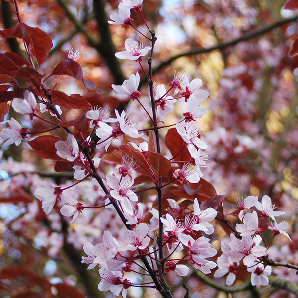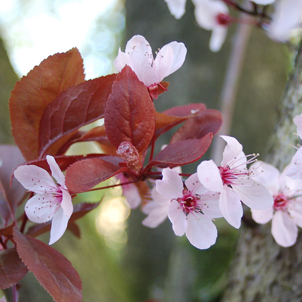 Die Blutpflaume (Prunus cerasifera ’Nigra‘) ist eine wertvolle Bienenweide. Sie verdankt ihren Namen den schwarzroten Blättern. Diese intensive Blattfärbung bildet einen attraktiven Kontrast zu grünlaubigen Gehölzen. Ihre rosa Blüten zeigt sie im März und April, noch vor dem Laubaustrieb. Die Blutpflaume steht gern allein, da sie als Strauch eine Höhe von bis zu 4 m und als Baum eine Höhe von 8 m erreichen kann. Ihr Standort sollte möglichst sonnig sein.