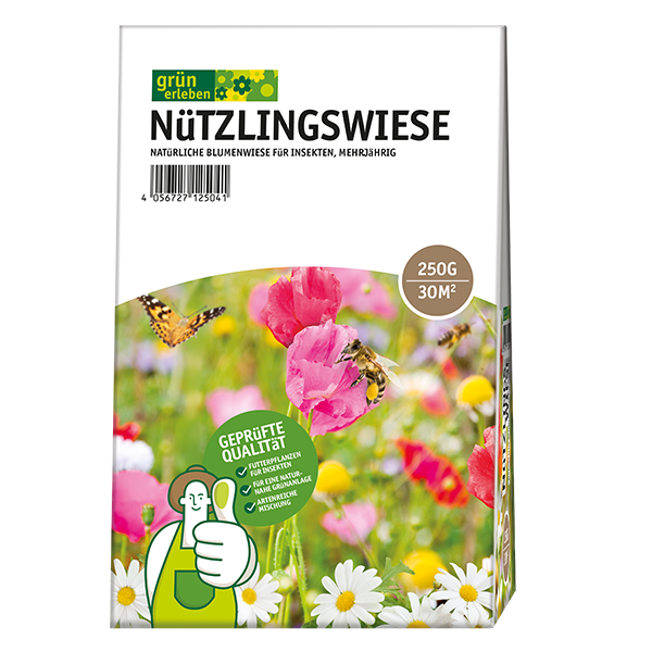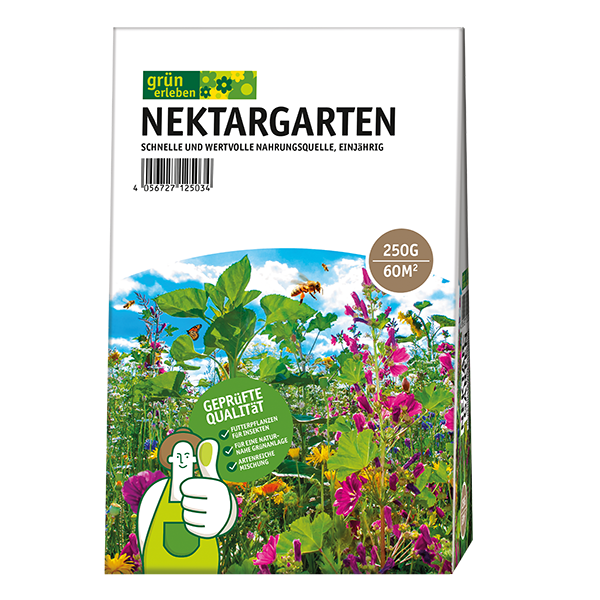 Muss es allein Rasen sein? Oftmals wird Rasen aus purer Verlegenheit angesät, weil es dort einfach nur „grün“ und „ordentlich“ sein soll. Blumenbeete statt Rasen – und sei es nur stellenweise – sind vergleichsweise pflegeleichter und bunter. Ihre Blüten bieten allerlei Tummelplätze für Insekten und die hohlen Samenstände sowie Stängel für Winterschutz. Für eine natürliche Blumenwiese empfehlen wir Ihnen die grün erleben NüTZLINGSWIESE, die mehrjährig für eine wertvolle Nahrungsquelle der Insekten sorgt. Geht es um Blütenpracht für nur einen Sommer, dann wählen Sie den grün erleben NEKTARGARTEN, den Sie ebenfalls in Ihrem grün erleben Gartencenter erhalten.