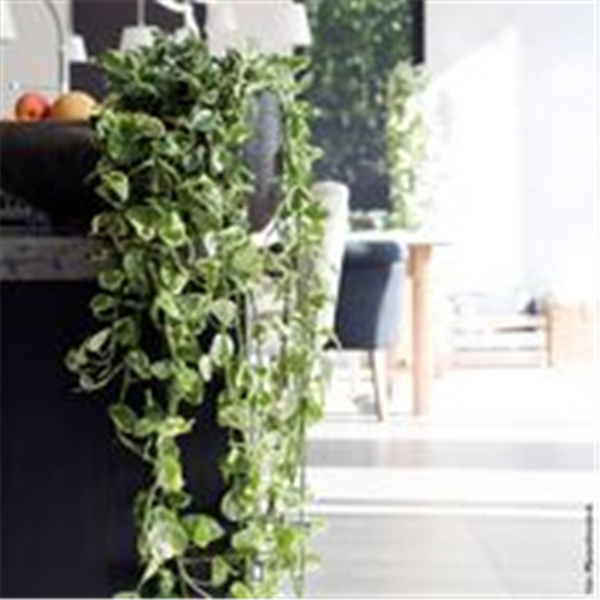 Mit ein paar Hängepflanzen verwandeln Sie Ihr Wohnzimmer im Handumdrehen in einen kleinen Privat-Dschungel. Die tropische Efeutute (Epipremnum) mit ihren schönen Blättern leistet einen super Beitrag. Durch Züchtungen gibt es eine breite Palette an Blattfärbungen in Weiß, Gelb oder Hellgrün. Wenn Sie dieser Pflanze eine Kletterhilfe geben, können Sie ganze Regale oder Fenster umranken.